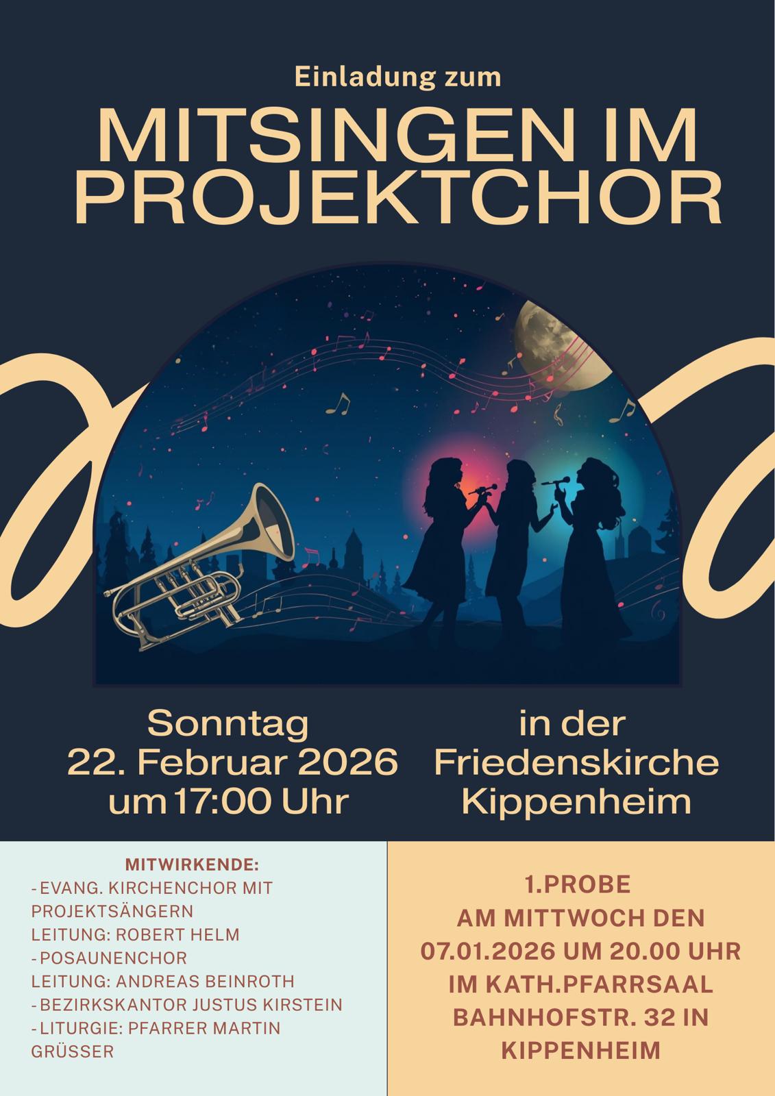 Ein besonderes Chorprojekt startet am 7. Januar 2026 um 20.00 Uhr mit einer ersten Probe im kath. Pfarrzentrum in Kippenheim: